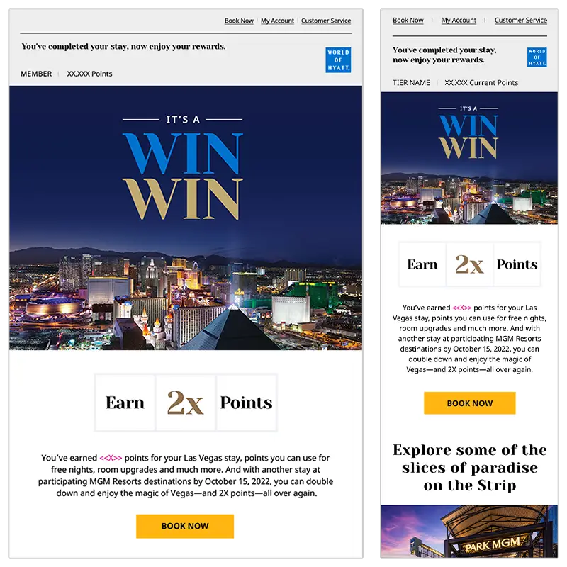 Shown here is one email built to two sizes, one for desktops and one for mobile devices.